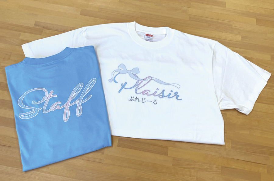 【ぷれじーる】様よりTシャツをご依頼いただきました。ロゴ画像をプリント用に整えたり、ロゴとそっくりなスタッフ用のデザインも作成いたしました!