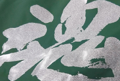 あらかじめ決まった色のラバーシートをデザインの形状にカットして、商品にプレスするプリント方法です。